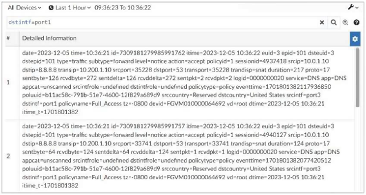 This is correct. The exhibit clearly shows the raw, text-based output of a log search. FortiAnalyzer's Log View provides two primary search modes: