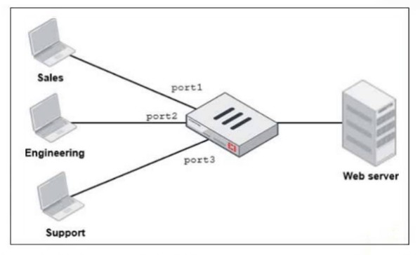 FortiGate has two separate firewall policies for Sales and Engineering to access the same