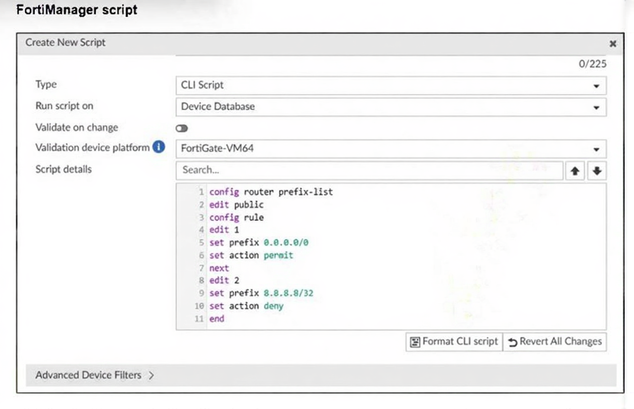 Since the script only updates the Device Database, the changes are not yet pushed to the FortiGate.
