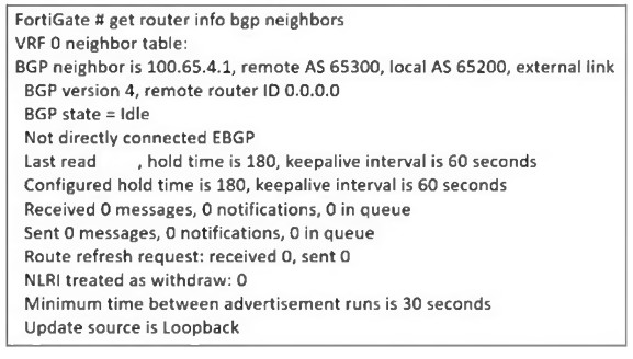 The administrator has configured BGP on FortiGate. The status of this new BGP