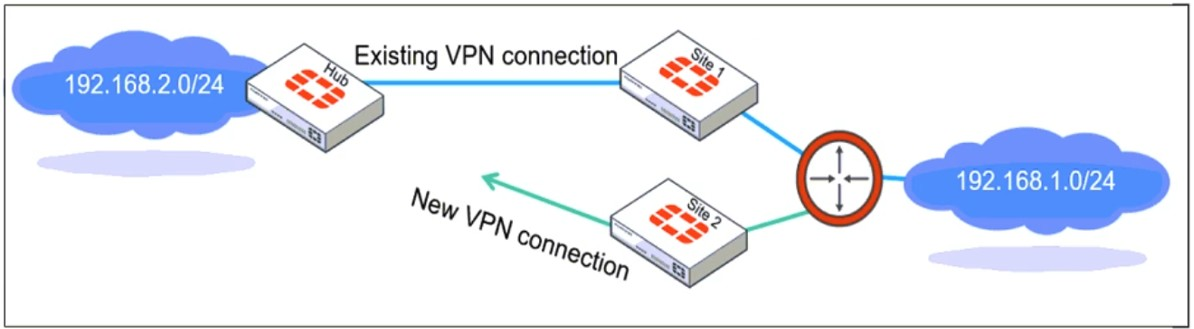 Refer to the exhibit, which shows a network diagram showing the addition of site 2 with an