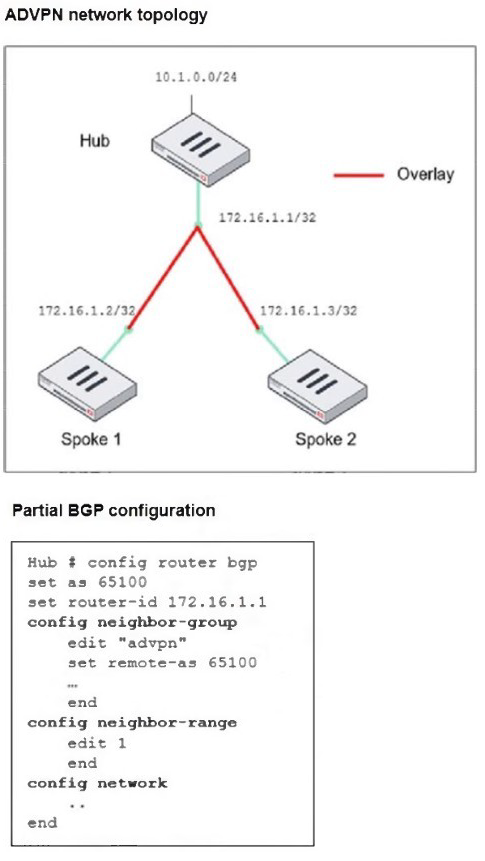 Refer to the exhibit, which shows the ADVPN network topology and partial BGP