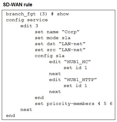 Refer to the exhibits, which show the configuration of an SD-WAN rule and the