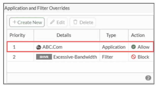 A: Incorrect. Excessive-Bandwidth is a separate filter override (priority 2, Block action) that doesn't affect ABC.Com (priority 1).