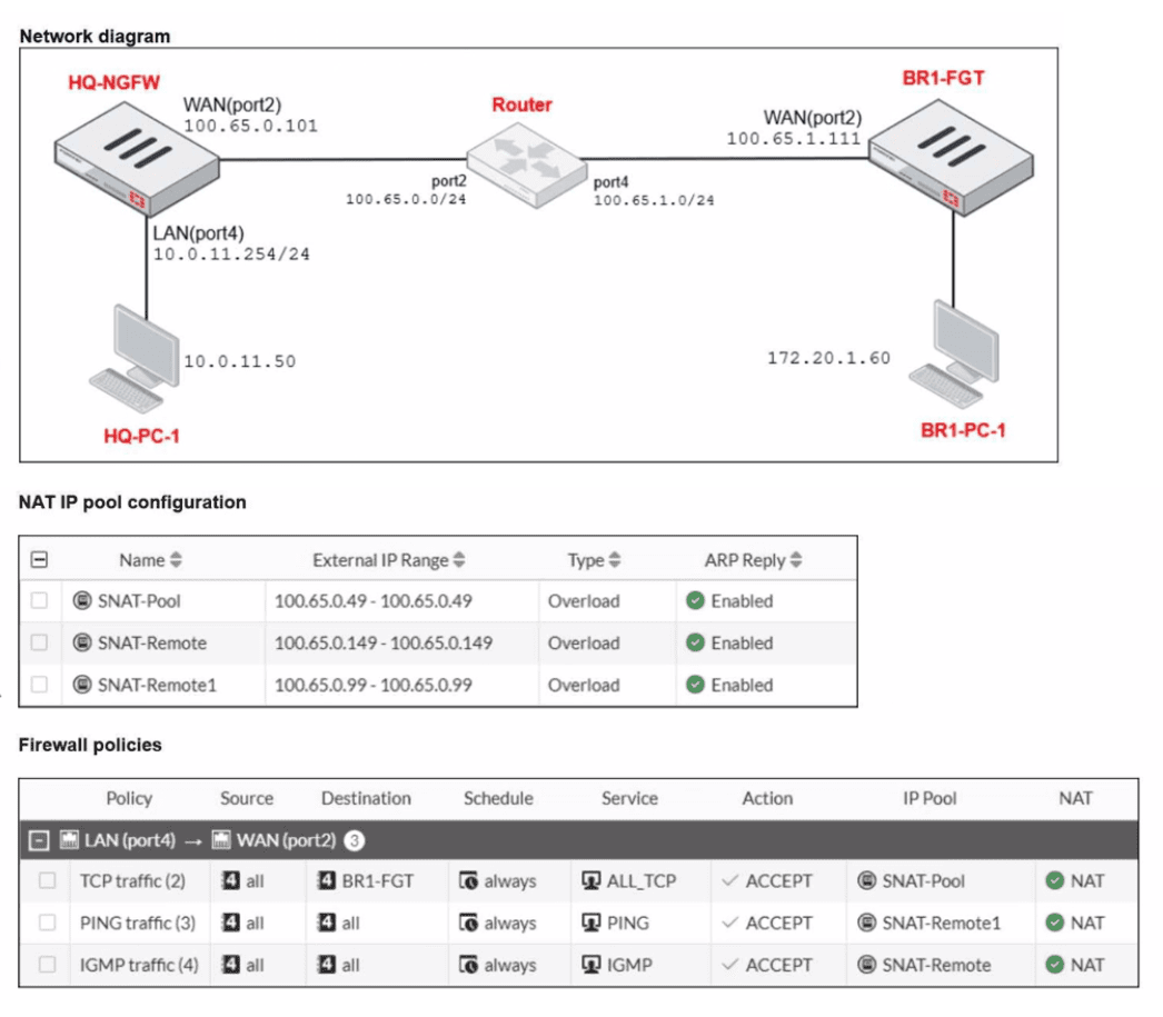 (10.0.11.50) pings the IP address of BR-FGT (100.65.1.111)?
