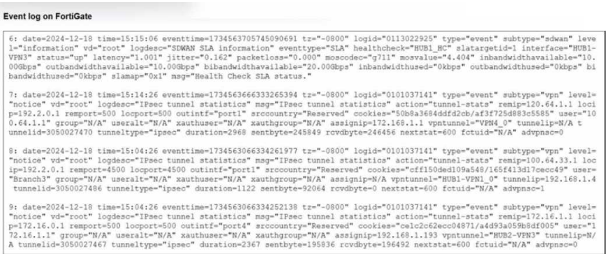 Refer to the exhibit that shows event logs on FortiGate.