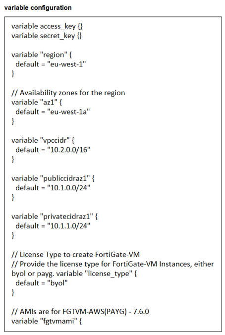 D. Terraform will deploy a FortiGate VM in the eu-West-1a availability zone with two subnets and BYOL license.