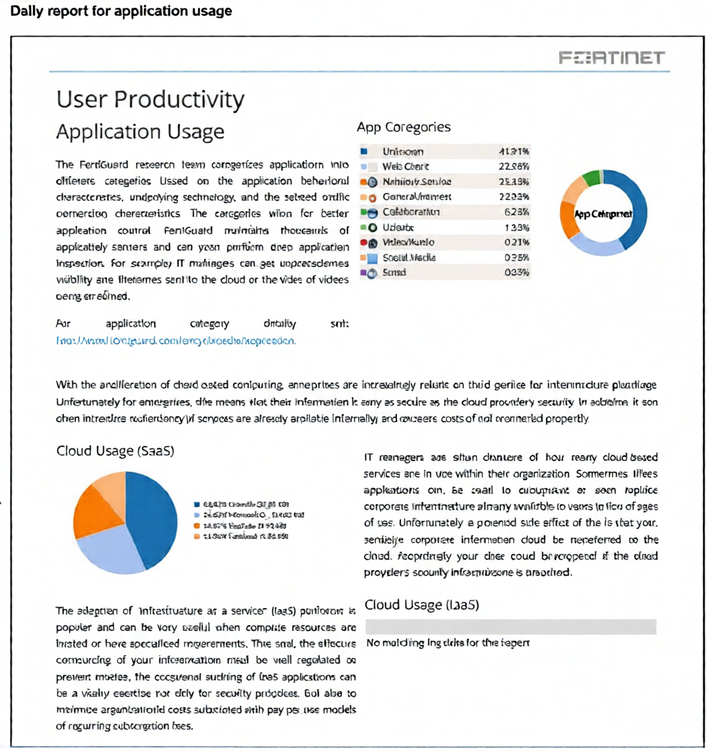 The provided exhibit shows a daily application usage report with a high percentage of traffic categorized as "Unknown" (41.31%). In FortiSASE and FortiGate application control, traffic is classified as "Unknown" when the security service cannot identify the application using its deep packet inspection (DPI) engine and application signatures.